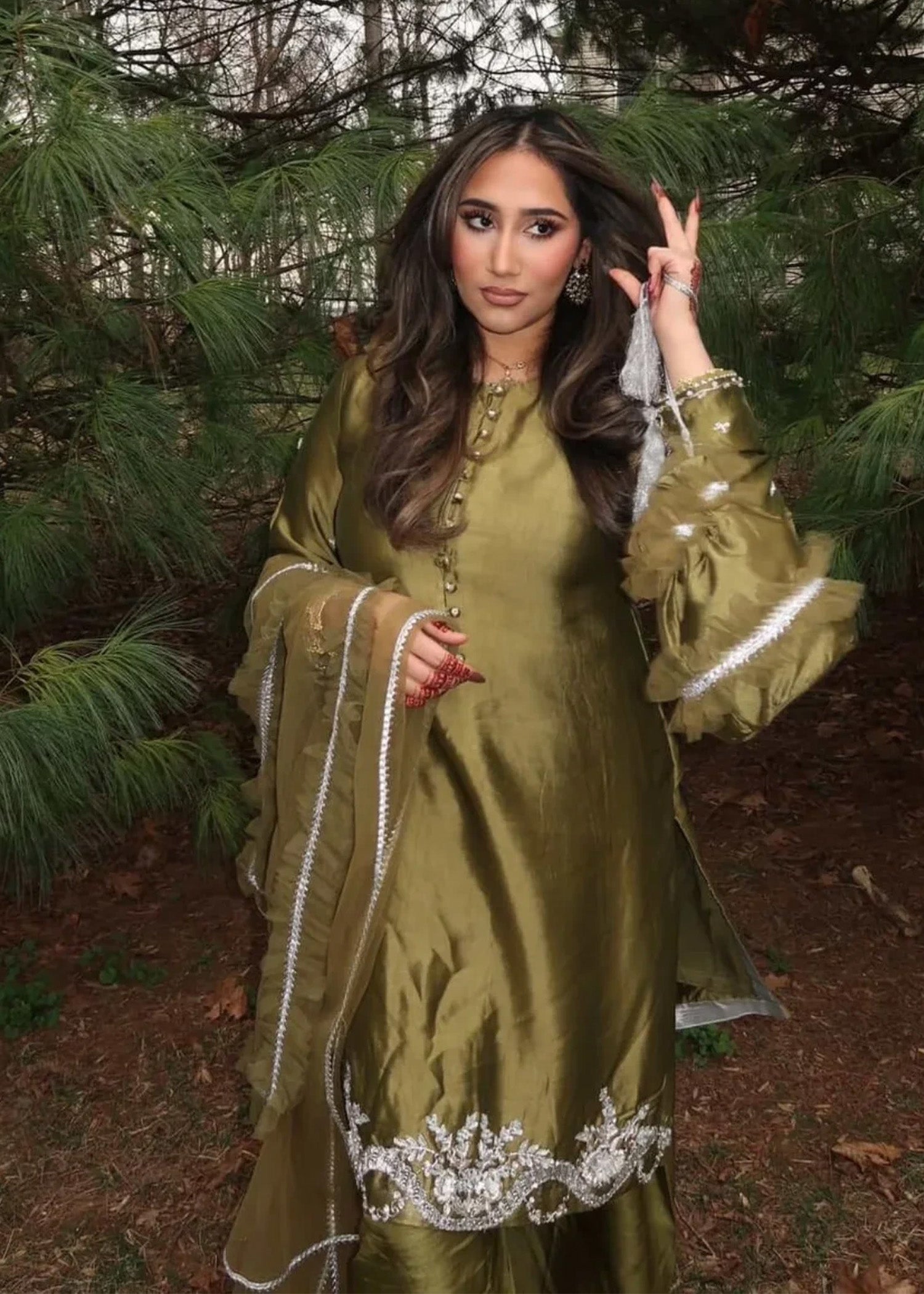 Autumn is the season's most stylish and on-trend silhouette, featuring a beautifully embellished daman, paired with a playful shalwar and a gorgeous frilled dupatta for the perfect finishing touch.